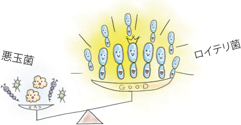 ロイテリ菌は“ 天然の抗菌物質 ”と呼ばれていて、悪い菌を減らし、良い菌を増やしてくれます。